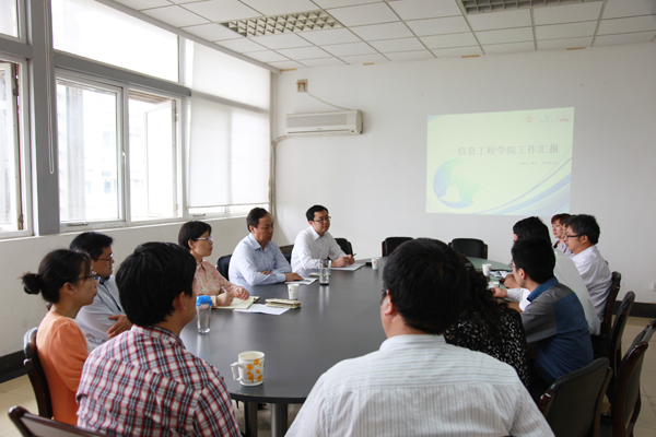 5月8日上午,校党委书记陈章龙到信息工程学院调研指导工作,并与学院党政负责人、系主任、行政人员座谈。校党委常委、党委组织部部长朱琴华、党校办主任赵国栋参加座谈会。座谈会由信息工程学院党委书记韩忠愿主持。