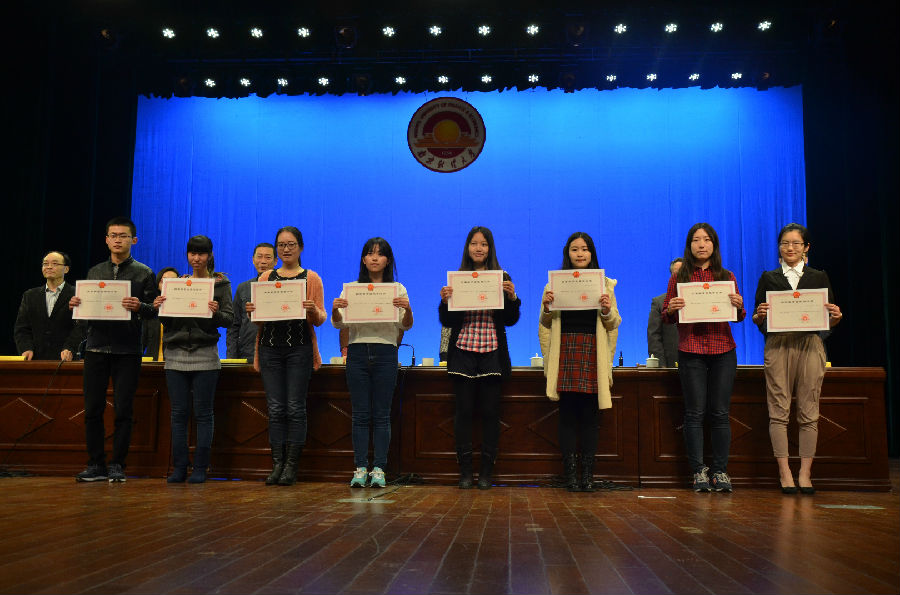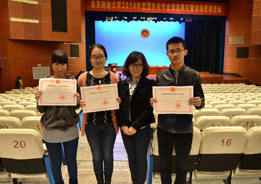 2011级张娟(女)、2012级马秋方(女)、2013级尤晶晶三名同学凭借自身努与过人实力在国家奖学金评选中脱颖而出,荣获2014年度国家奖学金。
