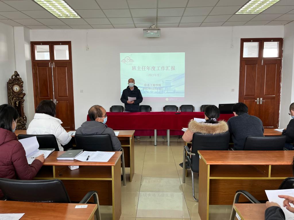 12月14日下午,信息工程学院在我校仙林校区德业楼406会议室开展2021-2022学年班主任工作汇报,学院党委书记周亚芳、院长黄健、副书记袁军、副院长李树青、马福民等全体党政领导以及全体辅导员参加,汇报会由学院的党委副书记袁军主持。