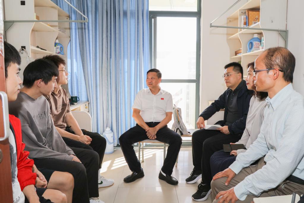 张利民书记与同学们开展面对面交流,详细了解同学们学习、生活、科研等方面情况以及遇到的困难,认真听取同学们对于专业学习、校园环境、食堂就餐、宿舍管理等方面的诉求和建议。张利民书记强调,学校始终坚持“以学生为中心”的办学理念,坚持以学生的关切、学生的期盼和学生的满意作为加强和改进一切工作的出发点和落脚点。同学们纷纷表示,近年来学校在民生工程方面的投入成效显著,特别是食堂、厕所、宿舍、运动场改造维修等切实提升了学生的校园学习生活品质。