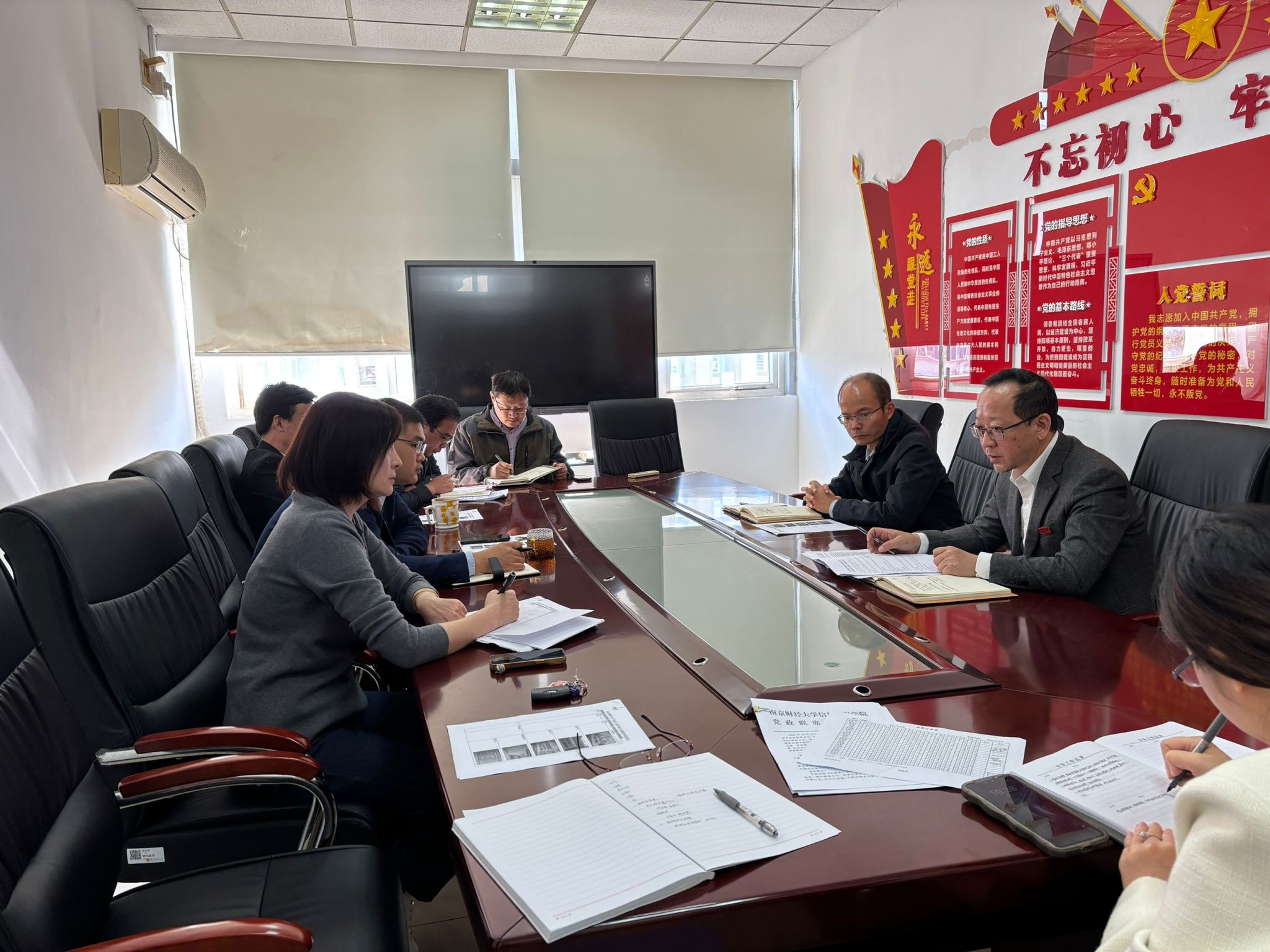 在德业楼412会议室召开党委理论学习中心组学习会议,全体党委理论学习中心组成员参加学习会。主要围绕深入学习贯彻习近平法治思想,深刻领会习近平新时代中国特色社会主义思想是全面推进强国建设、民族复兴伟业的行动指南的重要意义,深入学习领会习近平总书记关于推动金融高质量发展、建设金融强国的重要论述三个主题开展学习。会议由院党委书记张阳军主持。