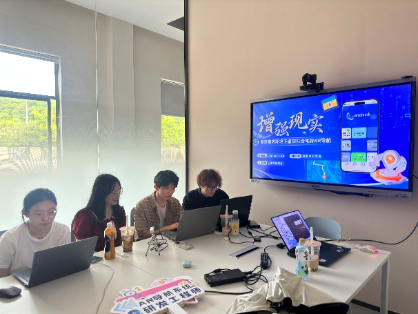 本次获奖项目聚焦复杂室内环境下的虚实融合地标AR导航技术,团队成功研发出一套轻量级、低成本、零部署、易普及推广的室内定位导航系统。该系统创新性地将人工智能视觉定位算法与增强现实技术深度融合,可广泛应用于商业综合体、停车场、文博场馆等场景,有效解决了传统室内导航依赖硬件部署、成本高昂、精度不足等行业痛点。为攻克这一项目技术难点、实现最优竞赛表现,团队以“专业课程为基础、教学实训为支撑、产业需求为导向”构建备赛体系,参赛的4名队员均来自计算机科学与技术专业本科生,分别负责算法优化、系统开发、场景测试与交互设计,形成了精准对接岗位需求的分工体系。在朱利涛、李树青两位指导教师的带领下,团队构建了“技术研发-功能测试-迭代优化”的完整工作闭环,精准把握赛题核心,创新性地将人工智能技术与增强现实技术相结合,切实解决了实际应用中的室内定位导航等问题。整个备赛和参赛过程正是学校“学、练、赛、创”一体化人才培养体系的生动实践。