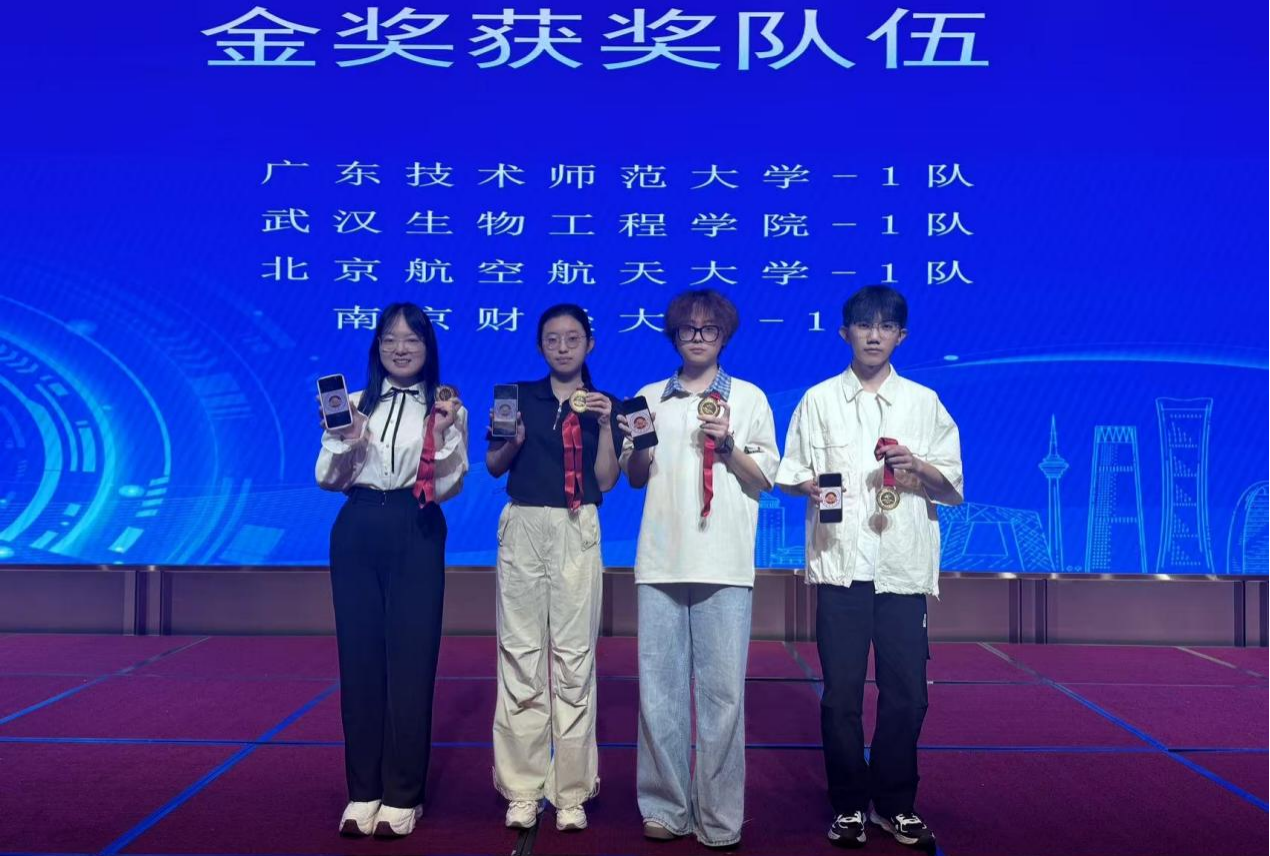参赛队伍在闭幕式上领取金奖(从左至右:朱明慈、吴亦乔、杨陆、王沁园)