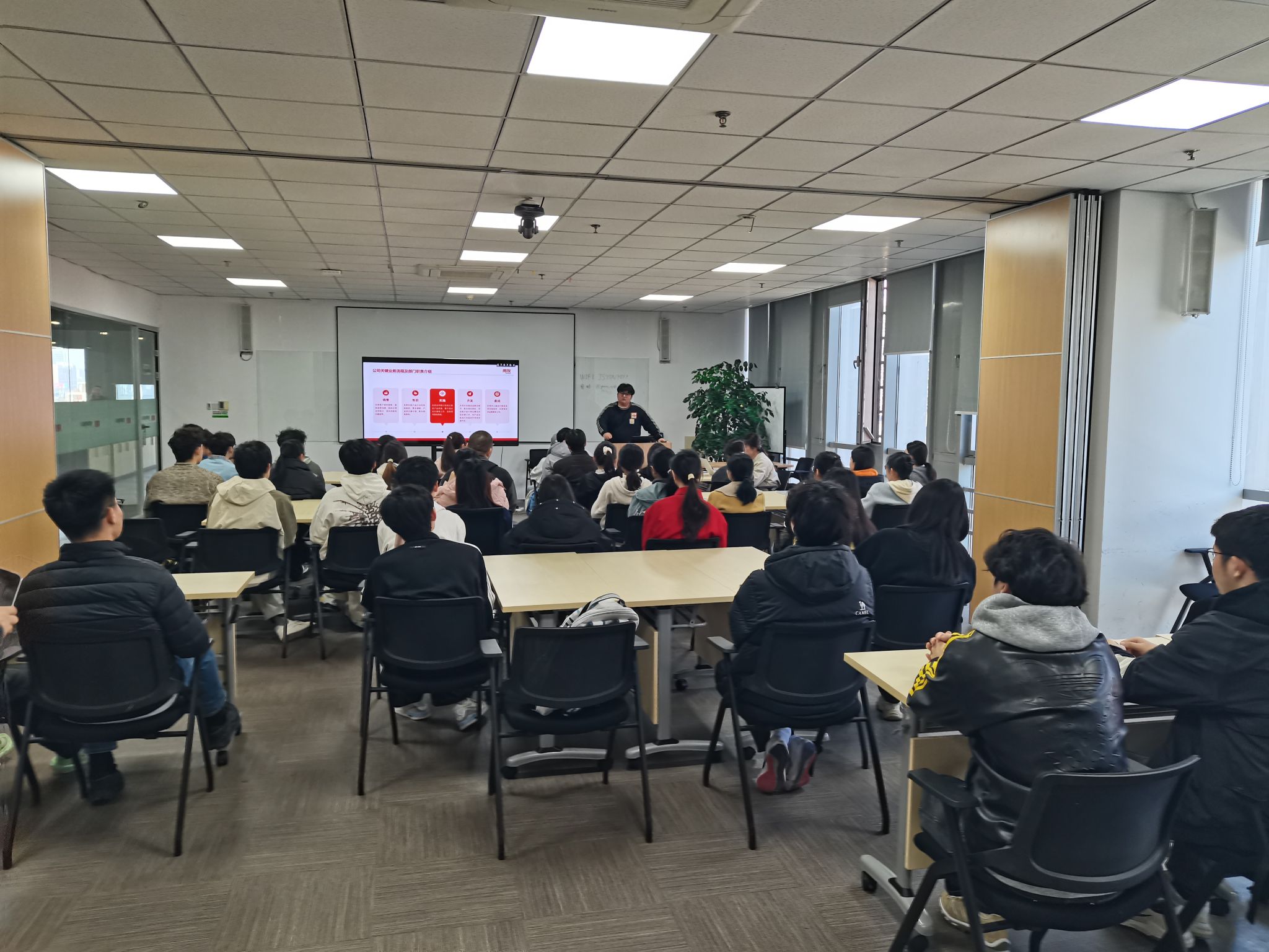 参观结束后,蔡菊屏总监及企业各相关部门负责人与师生开展座谈交流,系统介绍了江苏用友的实习生招聘标准、培养体系及职业发展通道,同时结合企业发展需求,详细解读了财务实施、客户化开发、产品支持等核心岗位的能力要求与招聘需求,为学生们的职业规划提供精准指导。