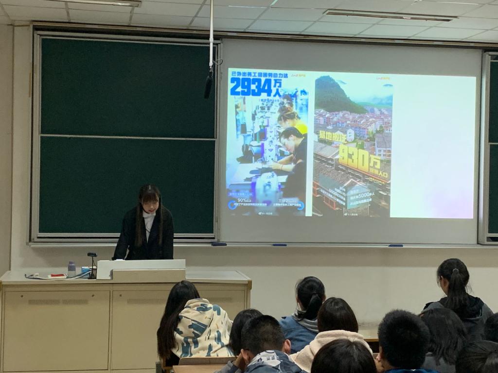 2020年11月17日,我院以“脱贫攻坚,在你我身边”为主题在我校博观楼201开展了“新生青马班第一课”。本次由管理1901班的梁舒越同学担任主讲人。