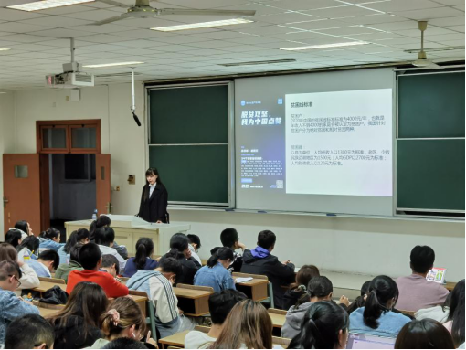 小老师将话题视角投向身边,结合PPT向同学们展示了在脱贫攻坚战役中南财学子所做出的努力与贡献,并向同学们详细解读了其成就以及成就背后所付出的艰苦奋斗。