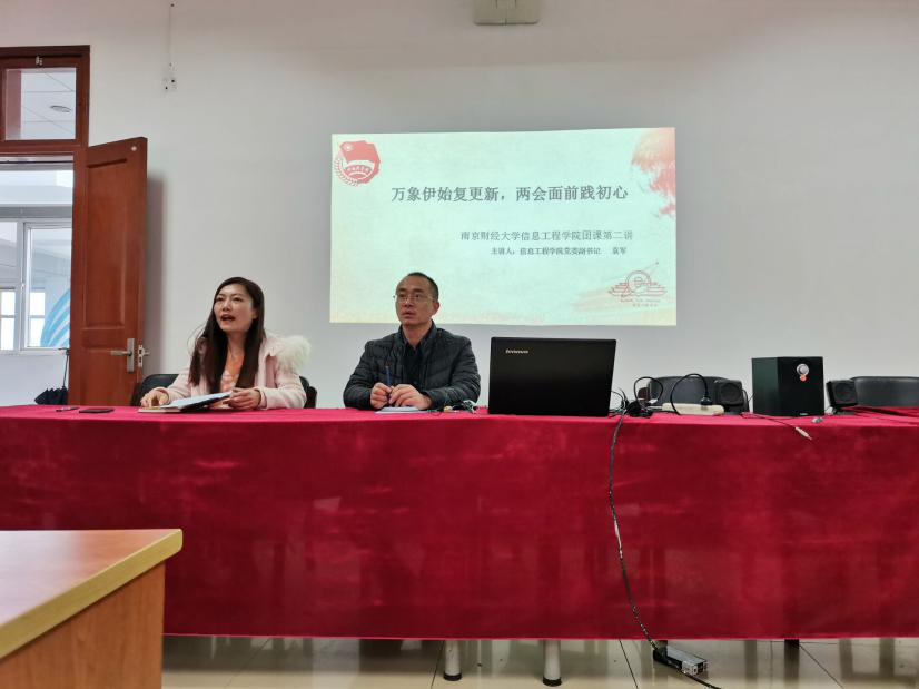 信息工程学院在德业楼406开展了以“万象伊始复更新,两会面前践初心”为主题的新生团校第二讲教育讲座,本次团课邀请信息工程学院党委副书记袁军作为主讲人,并面向全体大一班长、团支书、学习委员和组织委员展开相关的思想作风教育。
