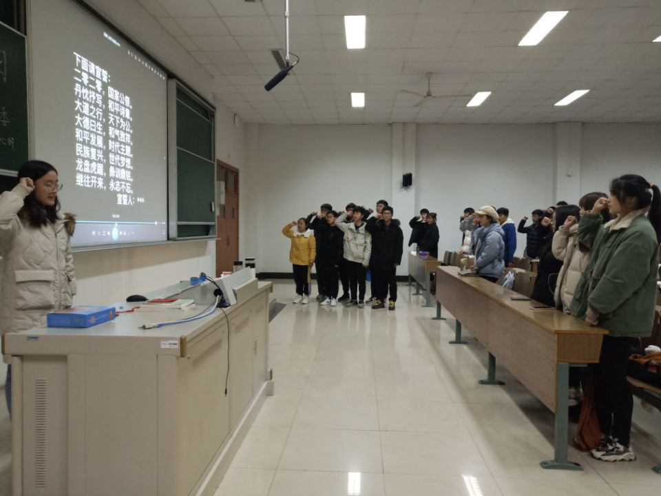 国家公祭,既是对死难同胞灵魂的安抚,也是对和平未来的期许,同时也告诫我们自己,要时刻保持清醒,绝不能忘却苦难、忘却历史。影片放映完毕后,分团委心理中心部田晓倩同学带领同学们宣读誓词。在田晓倩同学的引领下同学们举起右拳齐声宣读誓词,洪亮的誓言在教室中回响,也将久久回荡在每个同学心中。继往开来,永志不忘。现在的中国,比历史上任何时期都更接近民族复兴的伟大梦想。让我们牢记苦难,朝着中华民族伟大复兴的中国梦奋勇前进。