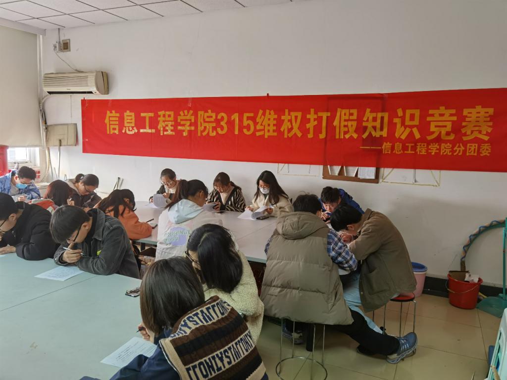 在“3.15”国际消费者权益保护日来临之际,为提高大学生安全保护意识,增强维护自身权益,近日信息工程学院在全院师生中开展 “3.15”维权打假知识竞赛以及校园调查采访等宣传活动。