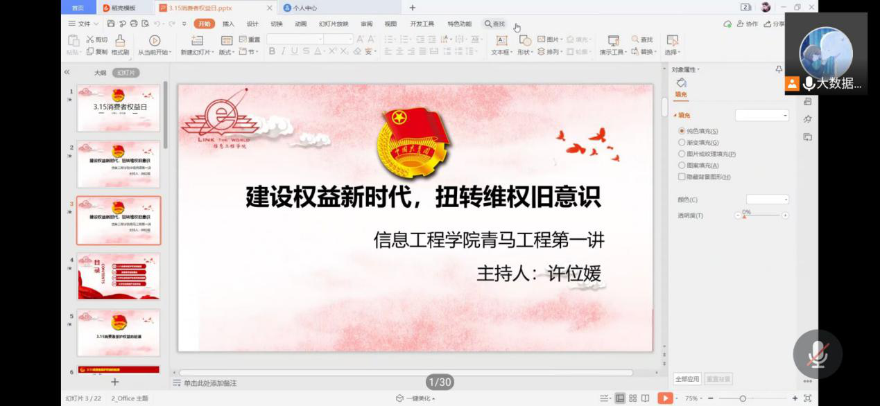 2021年3月12日,信息工程学院就即将到来的“消费者权益保护日”以“建设权益新时代,扭转维权旧意识”为主题通过腾讯会议开展了高清av