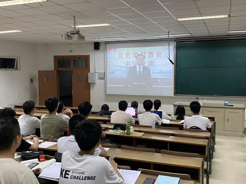 在课上张利民书记结合我校校歌“南财大之歌”为全体21级新生提出殷切希望——以创新为翼,你托举我展翅翱翔,以务实为帆,你推动我起锚远航。并提到习近平总书记在庆祝中国共产党成立100周年大会上的讲话,希望同学们响应总书记的号召,让青春在不懈奋斗中绽放绚丽之花。