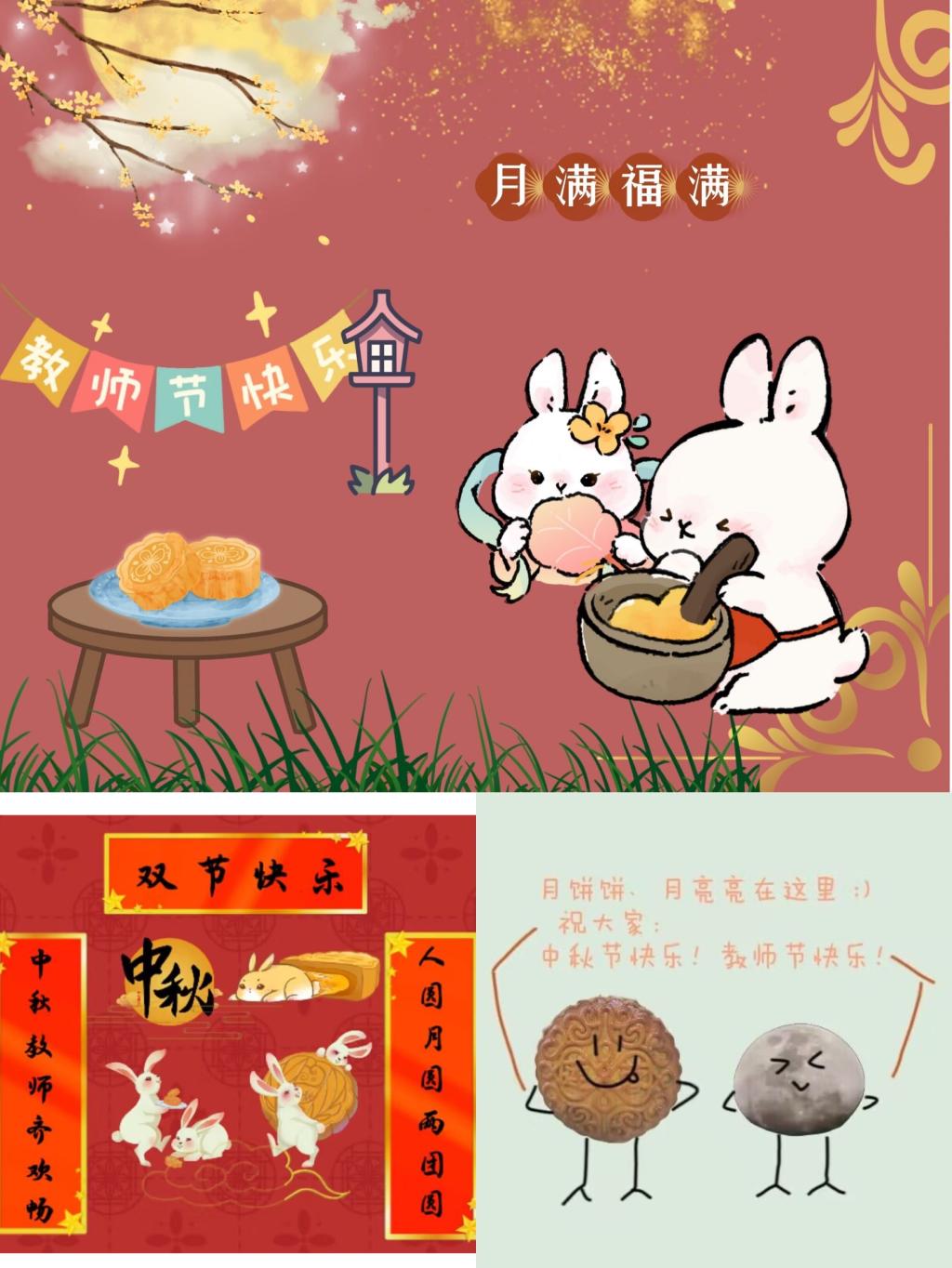 在活动中,有些同学充分发挥想象力和创造力,结合中秋元素,设计出俏皮可爱的表情包;有些同学拿起手机拍摄家乡的圆月,以此为背景制作出精美的电子明信片。他们在表情包和明信片中书写对老师们祝福的话语,他们用自己的热情向可亲可敬的老师们表达真挚的感激之情——感谢老师们的谆谆教诲,感谢老师们的无私奉献。