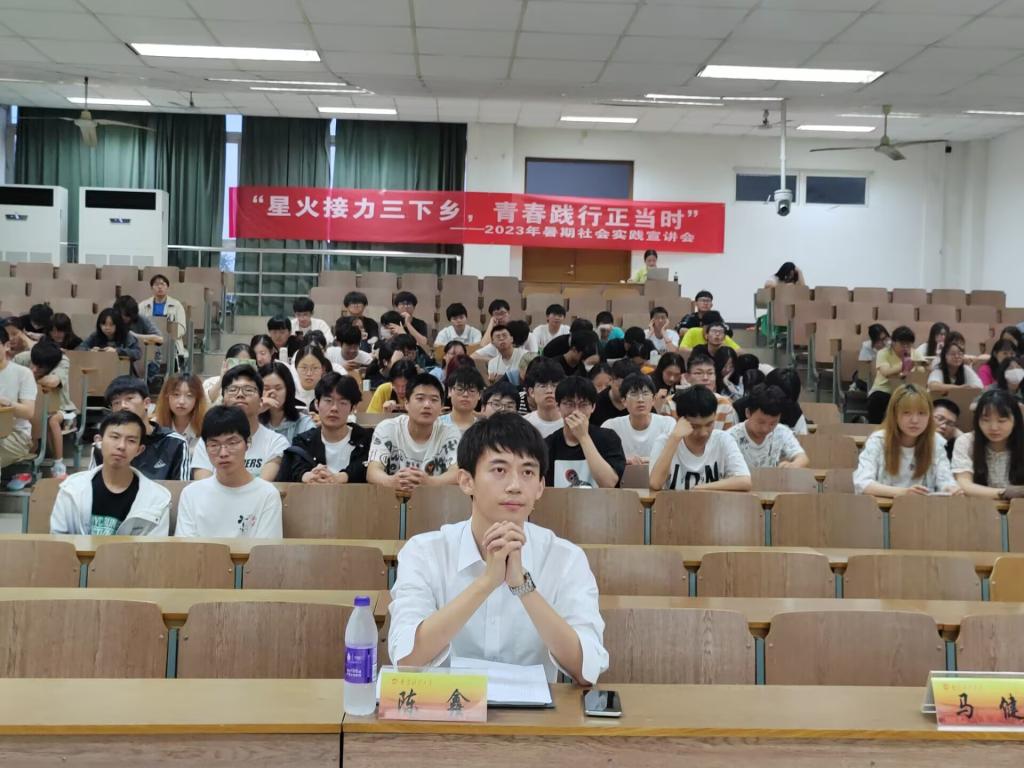 其次,主持人带领阅读《关于组织开展2023年暑期“三下乡”社会实践活动的预通知》,详细说明活动内容、实践形式和时间安排,使同学们对暑期社会实践的准备工作有了清晰认识。