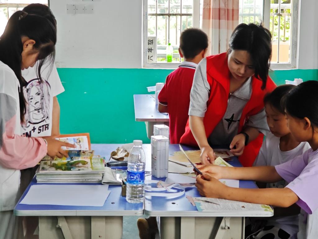 志愿者们在课堂上给予孩子们充分的鼓励和表扬,让他们感受到自己的价值。此外志愿者告诉孩子们不但要追求一个好的结果,更要注重创作的过程和享受创作的乐趣。通过旧书手工课,孩子们不仅学到了如何利用废旧资源进行创作,同时也培养了他们的动手实践能力和想象力。