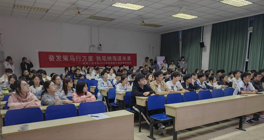为培养新一届学生干事的活动新闻稿以及策划案撰写能力,不断提升综合技能,发挥个人主观能动性,10月13日,信息工程学院在德业楼111举办了以“策马行万里,执笔纳海谋”为主题的新闻稿与策划案培训会。信息工程学院辅导员兼团委书记陈鑫出席会议,信息工程学院团委、学生会干事等参会。