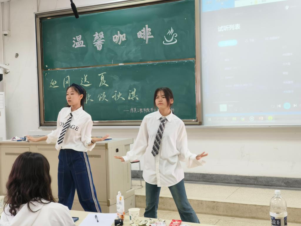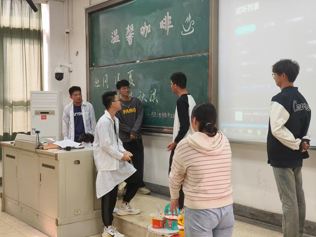 为加强学生会各中心成员之间的了解,培养各中心团队协作能力,发扬学生组织团结向上的精神,增强各中心团队凝聚力,10月14日,信息工程学院在德业楼101举办了第二十一届“迎风送夏,歌颂秋祺”温馨咖啡联谊活动。