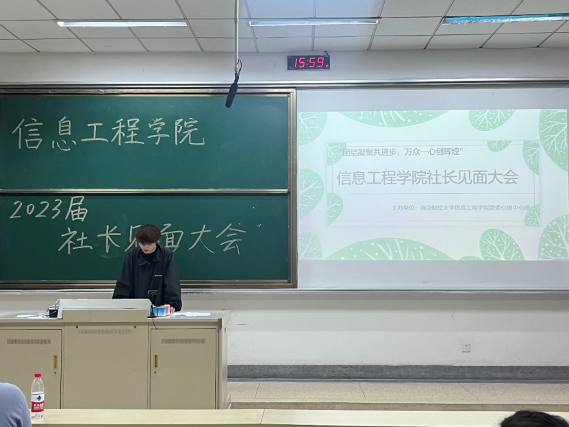 为加强信息工程学院团委与社团、社团与社团间的联系,打造积极向上的工作氛围,更好地配合开展各项活动,11月6日下午,信息工程学院在德业楼103开展了以“团结凝聚共进步,万众一心创辉煌”为主题的社长见面大会。院团委心理中心部全体成员、魔术社团社长常乐、推理协会社长张建佳和国标舞协会社长翟安琪参加本次会议。