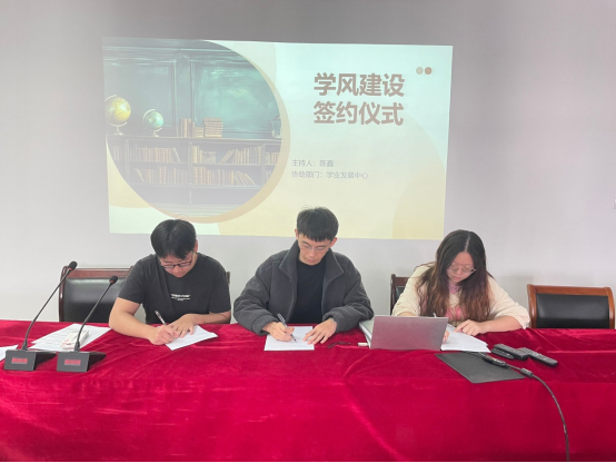2022级出现的学风问题进行了强调,并带领参会同学再次学习了《学生手册》中的课堂纪律的相关内容。最后,陈鑫老师与各班级副班长、学习委员签订了学风建设责任书。