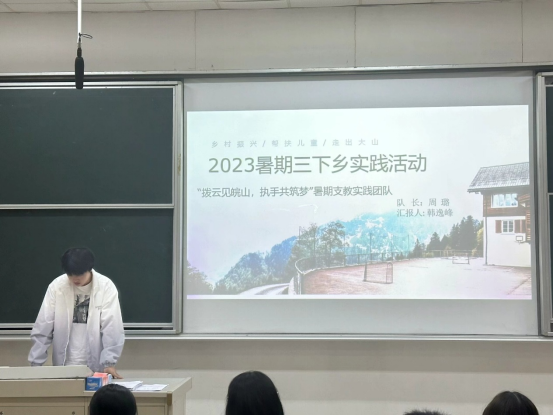 首先,“拨云见皖山,执手共筑梦——助力乡村振兴”暑期支教实践团队通讯员韩逸峰,讲述团队支教的实践背景和意义、实践目的、实践内容和个人心得体会,鼓励同学们加入本届暑期社会实践的支教团队。