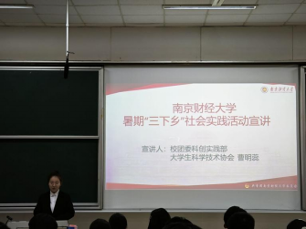 随后,校团委科创实践部、大学生科学技术协会社会实践部部长曹明蕊从大政方针、通知解读、实践流程三个方面介绍了什么是社会实践、如何开展社会实践,帮助同学们了解“三下乡”社会实践的具体内涵、历史进程、作用与形式。