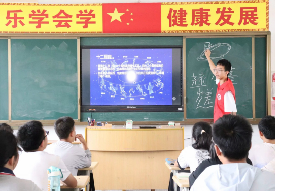 图为志愿者在视野开阔课上教授天文课程