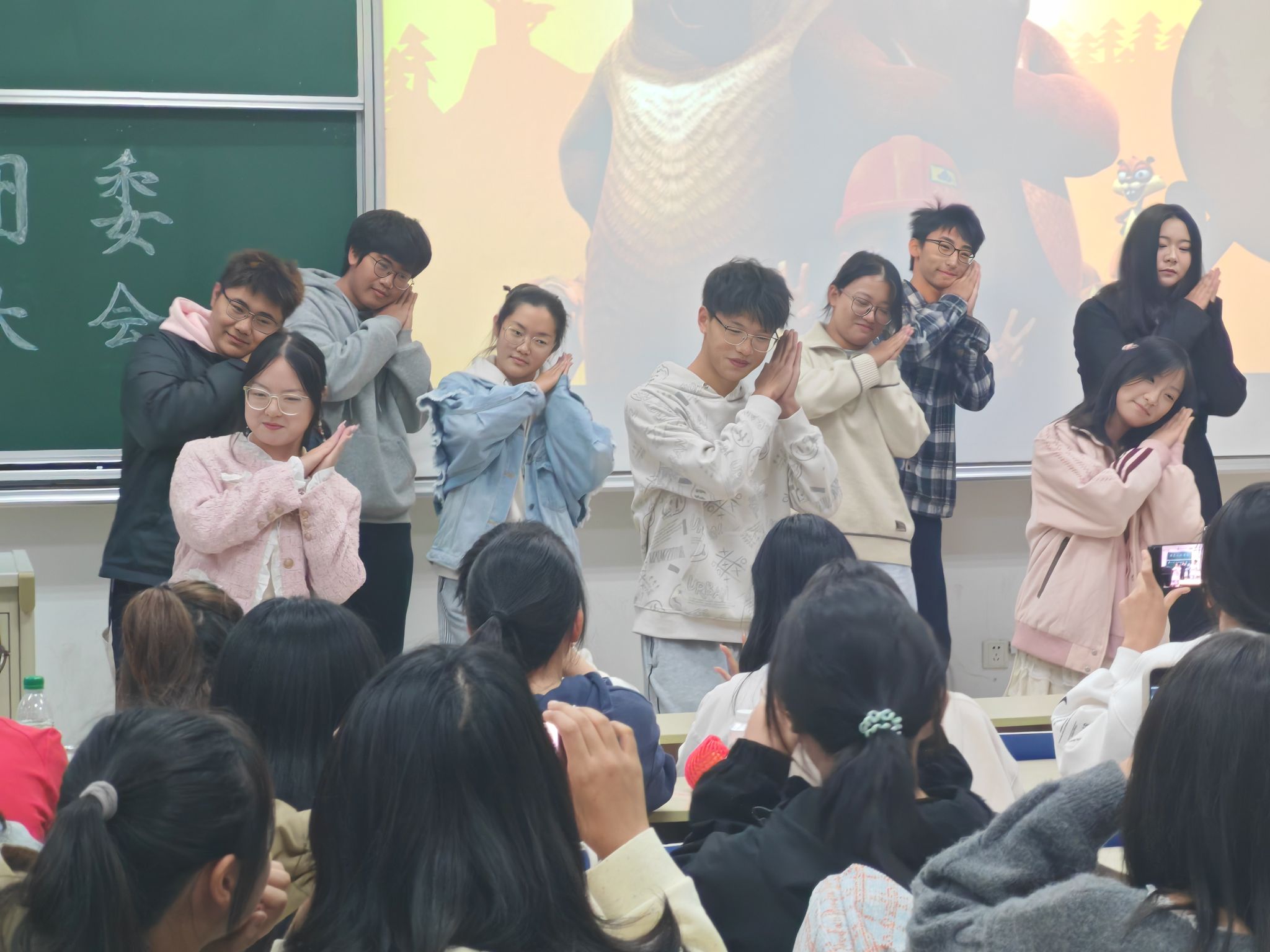 接着,各部门分别进行节目表演。组织部合唱《仰望星空》,宣传部合唱《起风了》,优美的旋律和美妙的声音交融,令人为之着迷;心理中心部舞蹈《开心超人》,灵活的动作洋溢着青春的活力与朝气;志愿服务部舞蹈《我还有点小糊涂》,跟着音乐摆动身体,扬起的手臂在空中划下优美的弧度,大家脸上绽放出笑容,也将大会的氛围带向高潮。