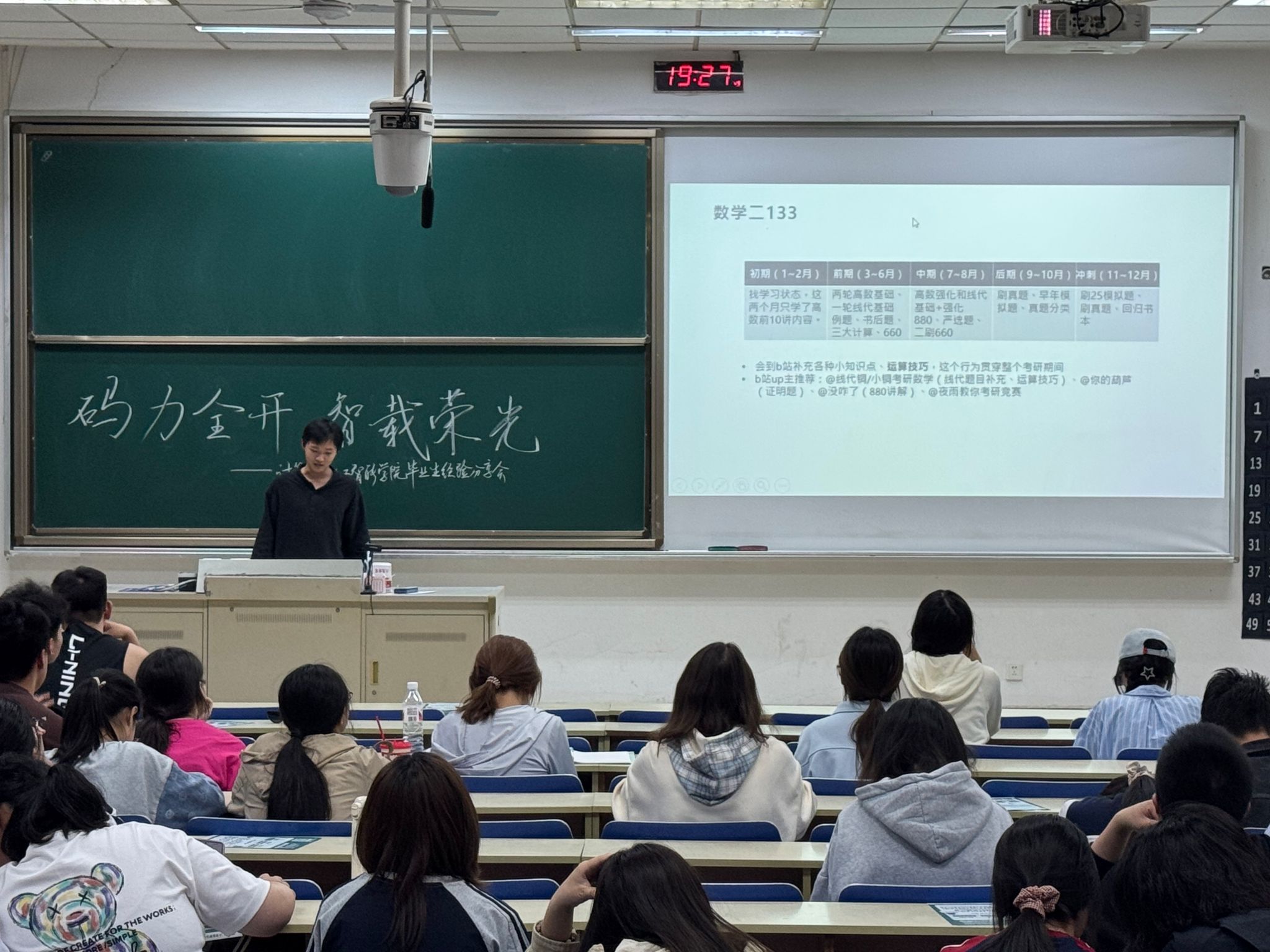 王贇学长以亲身经验讲述图书情报专硕备考指南,为同学们介绍大数据管理与应用专业考研的更多方向;姜海军学长则以高分上岸名校的备考经历,深入解析考研课程的复习策略与复习时间线。