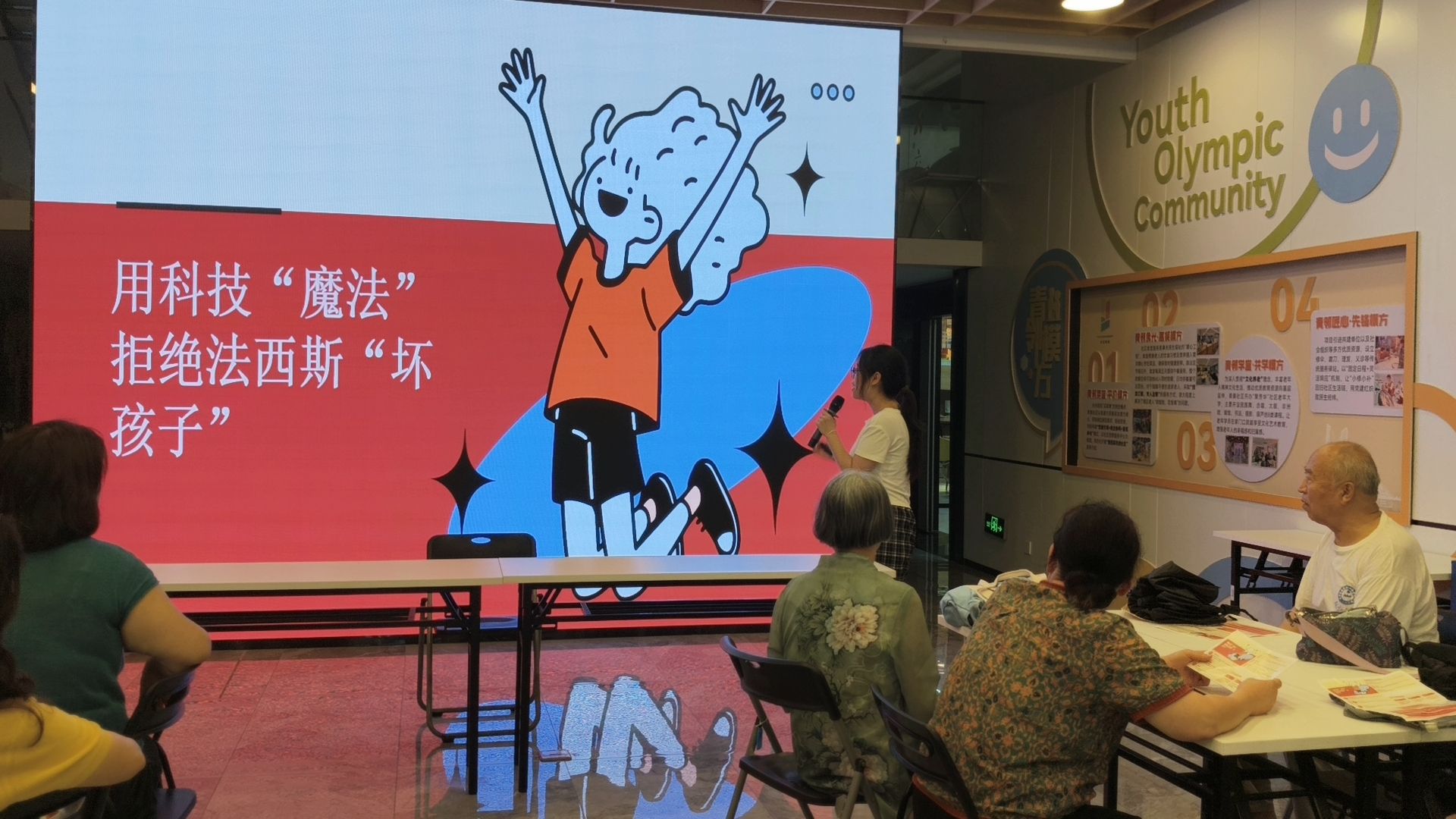 的“数忆和平”团队凭借新颖独特的形式与丰富多元的内容,向社区居民深入阐释了反法西斯的重要意义,充分展现了科技在防范法西斯主义传播过程中所发挥的关键作用。