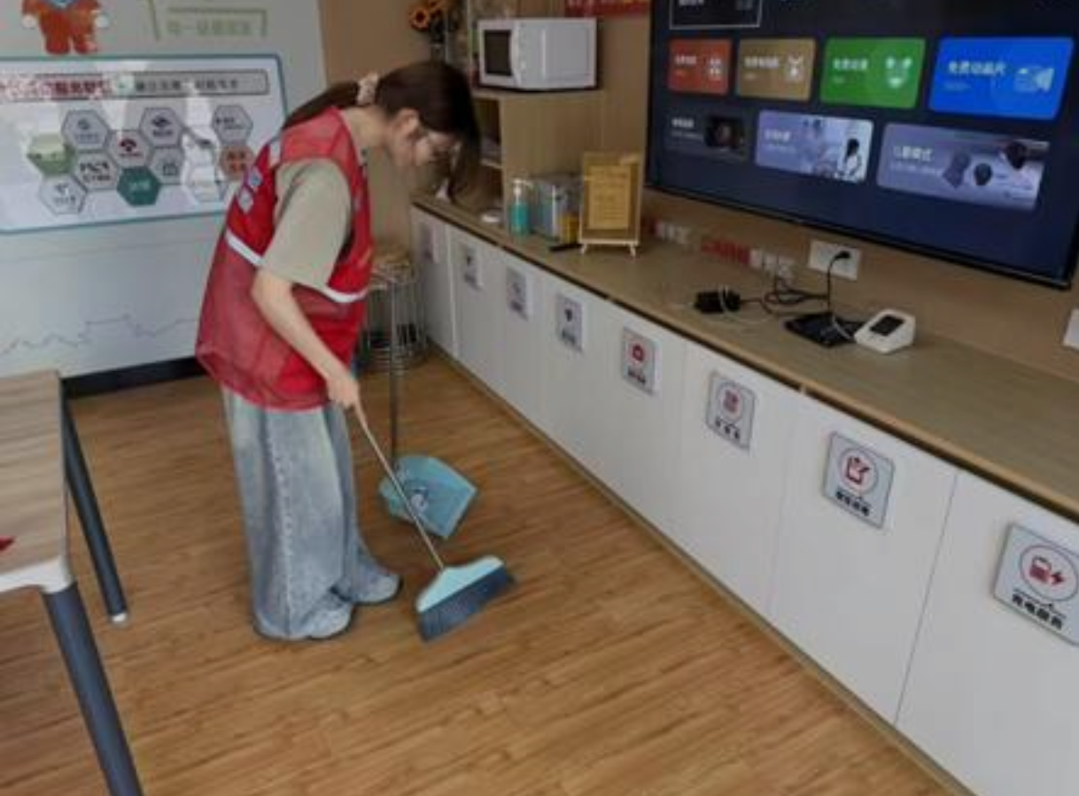 7月23日,在江苏省南京市的玄东枫景睦宁里樱驼花园站,实践队员丁灿与其他志愿者共同看守“暖心驿站”,提供精准便民服务。驿站聚焦群众日常需求,提供餐食加热、冷热饮水、避暑避雨、爱心药箱、手机快充、雨具借用等12项“小而实”的服务。志愿者们分工协作,为外卖骑手提供电动车换电充气服务,为居民讲解政策、协助流动党员报到。期间,“宁小蜂留餐”及社区食堂优惠活动惠及30余名户外劳动者。节日手工体验、健康义诊等特色活动进一步丰富了服务内涵,累计服务群众超200人次。