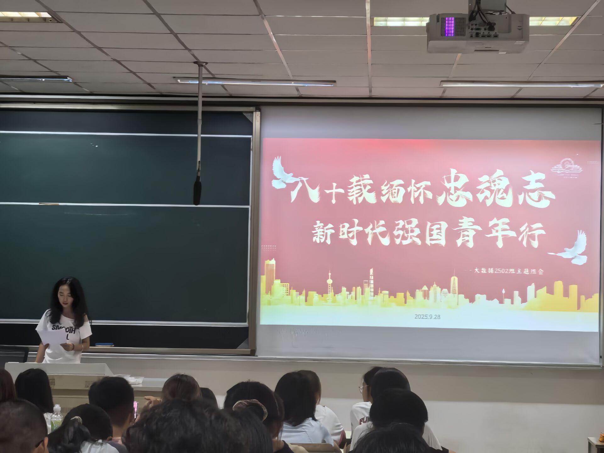 大数据2501班的班会围绕“启封·历史的来信”与“交锋·青年思辨会”层层展开。同学们首先通过观看抗日战争胜利八十周年纪念影片,开启了与历史的隔空对话。在光影交织中,大家重回那段山河破碎、存亡继绝的烽火岁月,深刻感受民族苦难,缅怀先烈壮举,体悟遗志传承。