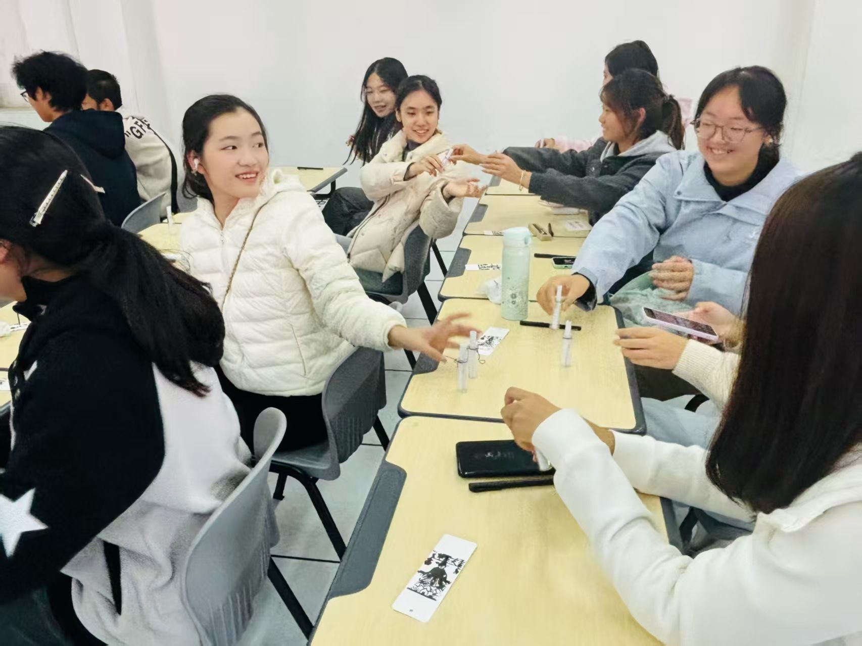 “学业漂流瓶”作为本次活动的亮点之一,为同学们搭建了一个开放的交流平台。大家畅谈学习中的困惑,分享心得体会。他们将写有疑问的纸条投入象征性的“漂流瓶”中,由同伴们互相解答、共同探讨,形成了一种持续的知识传递与情感联结,营造了互帮互助的良好学习氛围。