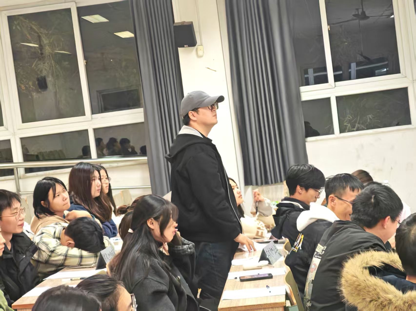 在“组内答题”环节,同学们以队伍为单位,开启了三轮有序的知识比拼。他们按照队伍序号依次作答,在1分钟的限时内独立回答C语言相关选择题——有的同学听到题目后迅速报出答案,展现了扎实的知识储备;有的则稍作思索,在限定时间内理清思路也精准地完成了答题。全程无人提示干扰,充分遵守“独立答题”的规则,既锻炼了个人知识掌握程度,也展现了团队的纪律性。每轮结束后,主持人当场公布得分,记分员同步记录,现场氛围既紧张又有序。
