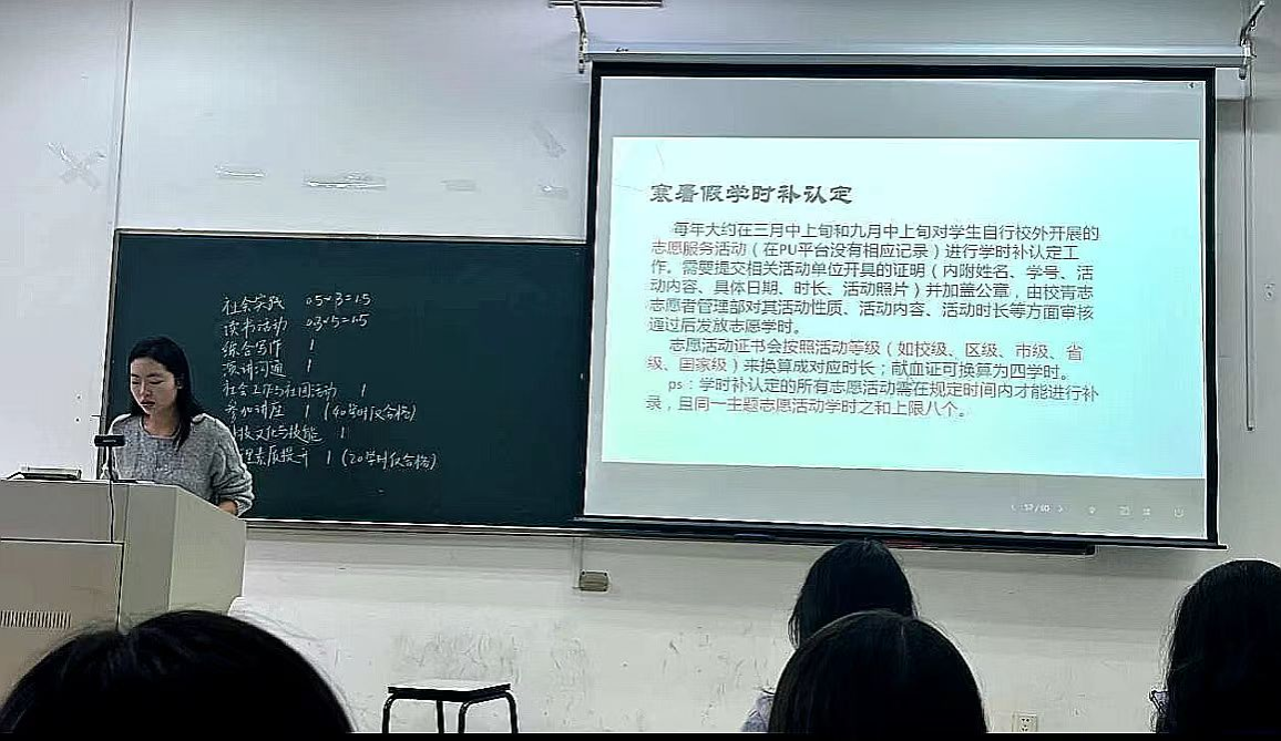 针对同学们普遍关注的“寒暑假学时补认定”问题,会上也进行了详细说明。每年三月和九月,学校将集中开展志愿服务类学时的补认定工作,适用于在校外自主开展且未通过PU平台记录的志愿服务活动。学生需提交由活动单位开具的加盖公章的证明,其中应包含姓名、学号、活动内容、具体日期、时长及相关照片,经校青年志愿者管理部审核通过后方可兑换相应学时。此外,不同等级的志愿活动证书(如校级、区级、市级、省级、国家级)可按标准换算为学时。主持人特别提示,同一主题的志愿活动累计学时上限为八个,同学们在参与时应合理安排、注重活动的多样性与持续性。