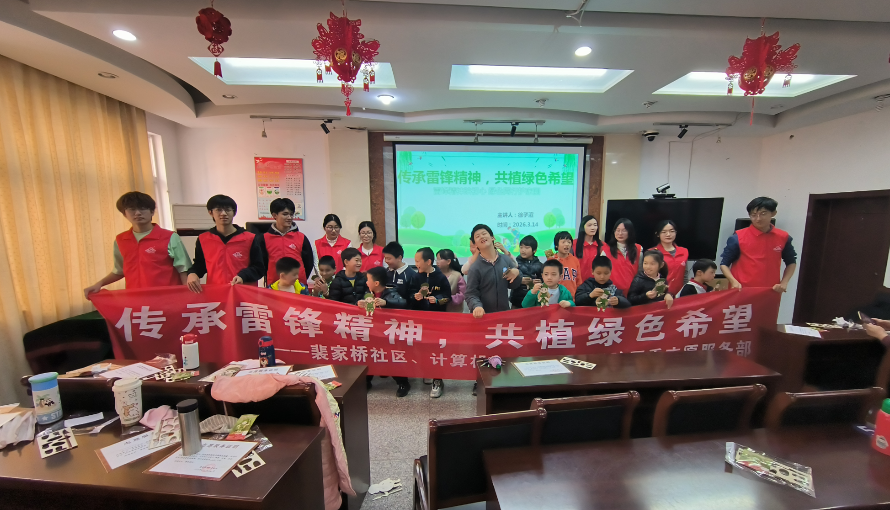 分团委志愿服务部走进裴家桥社区居委会,以“传承雷锋精神,共植绿色希望”为主题,开展了一场别开生面的春日志愿活动。本次活动通过寓教于乐的方式,让孩子们在劳动中感悟奉献精神,在实践中守护绿色家园。