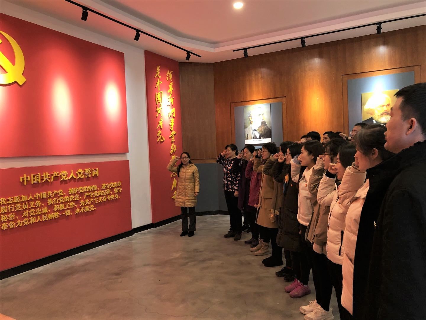 在党史国史教育馆和国防教育馆,大家深切感受到“历史是最好的教科书”,“坚持和发展中国特色社会主义、把党和国家各项事业继续推向前进的必修课。”使命在前,责任在肩,党员教师们在誓词墙前再次重温入党誓词。