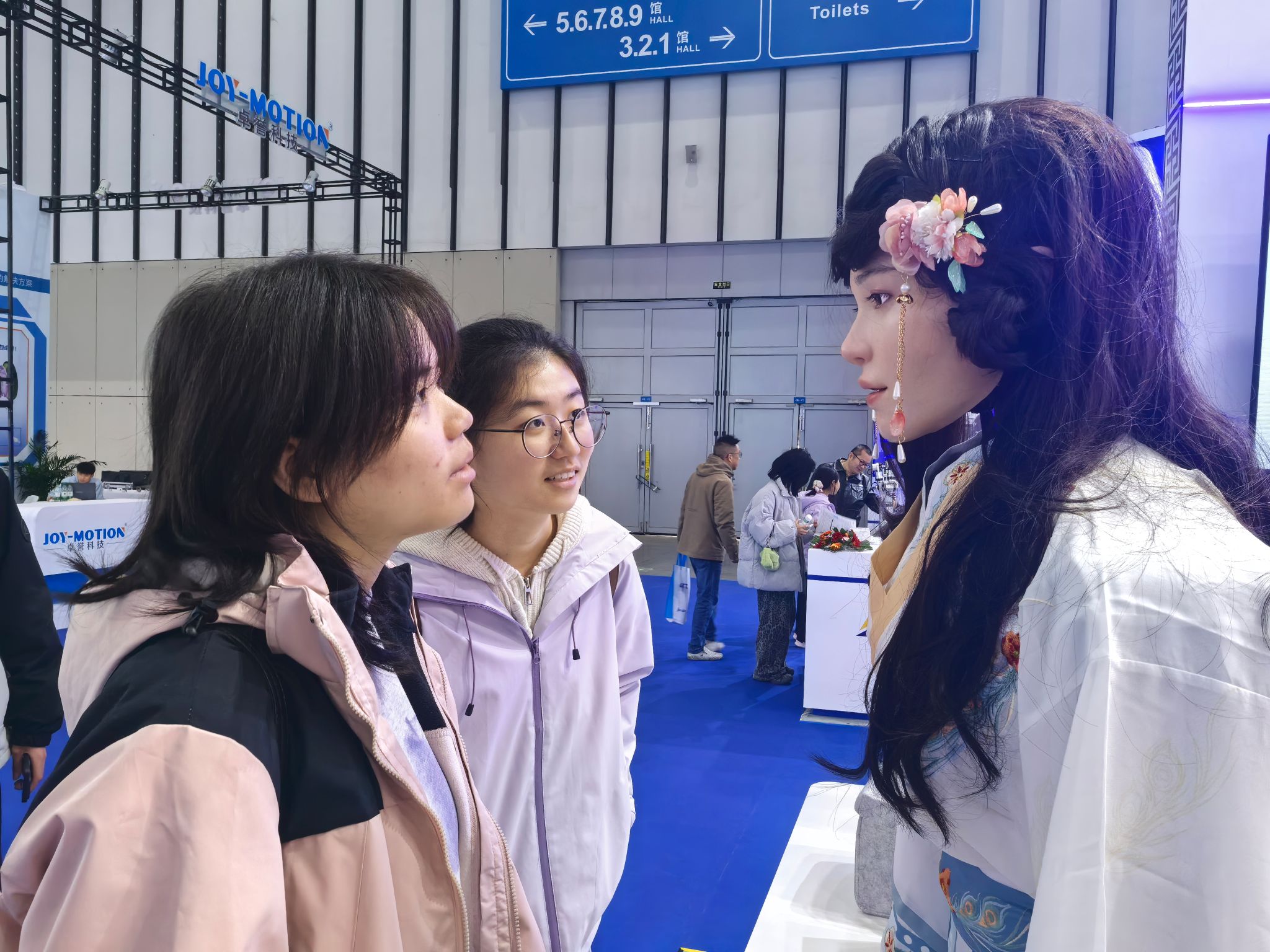 学生与机器人进行互动