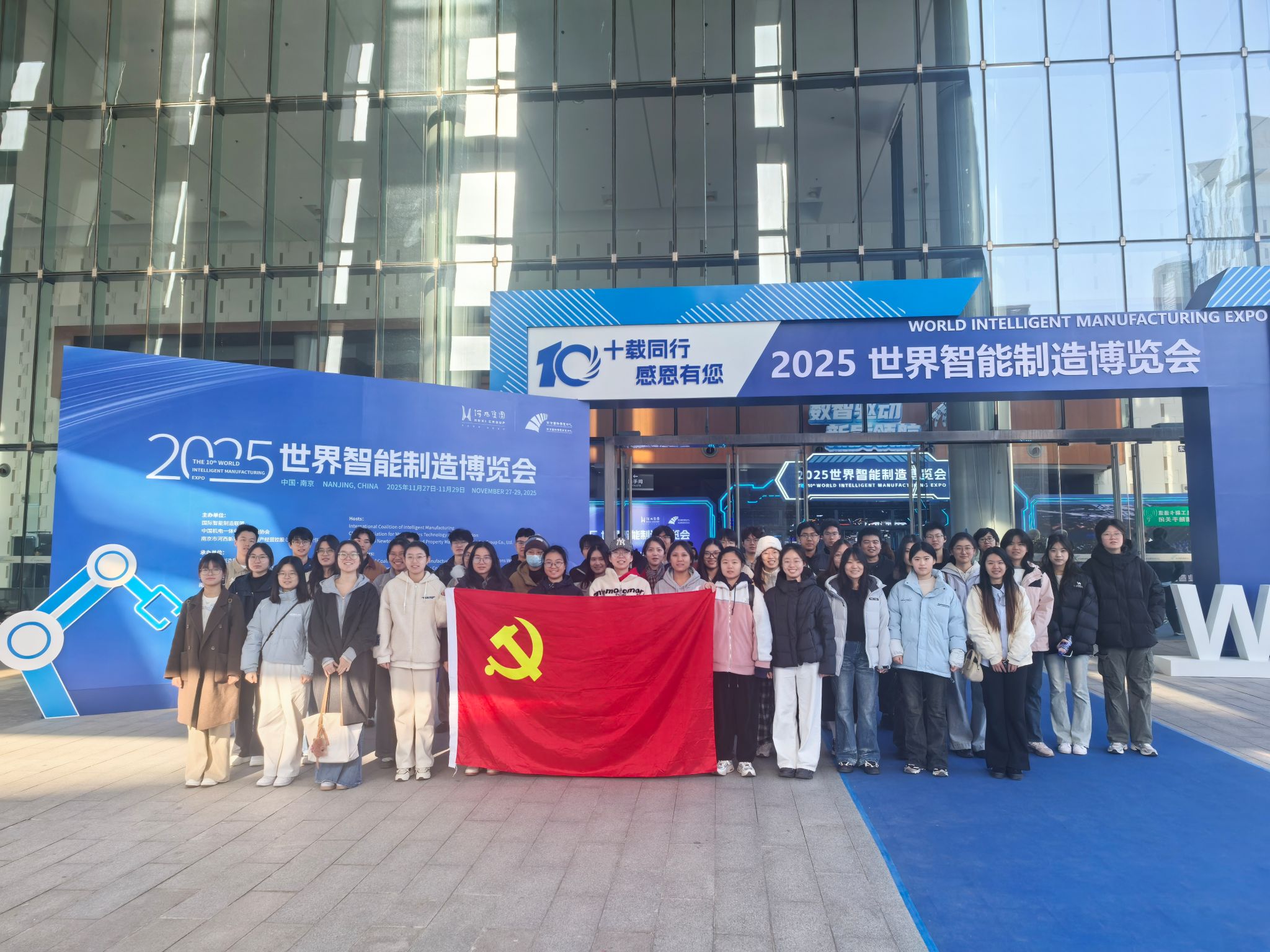 本科生第一、第二党支部及研究生党支部组织党员、党的发展对象和入党积极分子代表赴河西南京国际博览会议中心,参观2025世界智能制造博览会,在沉浸式体验中拓宽科技视野,凝聚奋进力量。