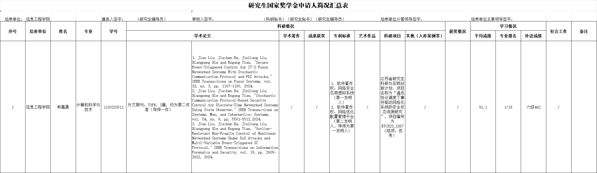 附件:研究生国家奖学金申请人简况汇总表(2024)