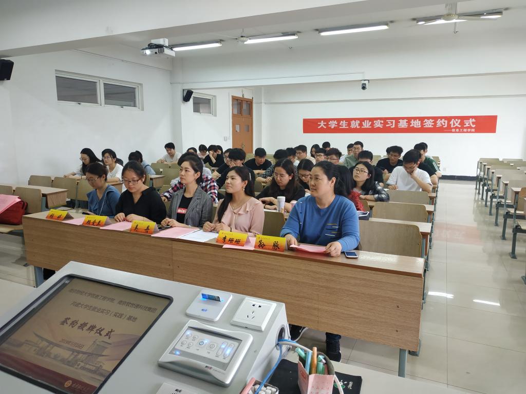 5月16日下午两点半,信息工程学院在我校仙林校区博文楼(教A)201室举办了“信息工程学院与南京软世通科技集团共建大学生实习实践基地签约授牌仪式暨招聘宣讲会”,参加此次签约授牌仪式的领导嘉宾有:信息工程学院党委副书记吴丹,南京软世通科技集团人力资源部负责人李珊珊,南京软世通科技集团入事经理顾爱兰,信息工程学院学工办主任张媛媛,2019届毕业班辅导员张婷,2016级辅导员孙脉以及2019届毕业生代表及其他在校生代表。仪式由张媛媛老师主持,